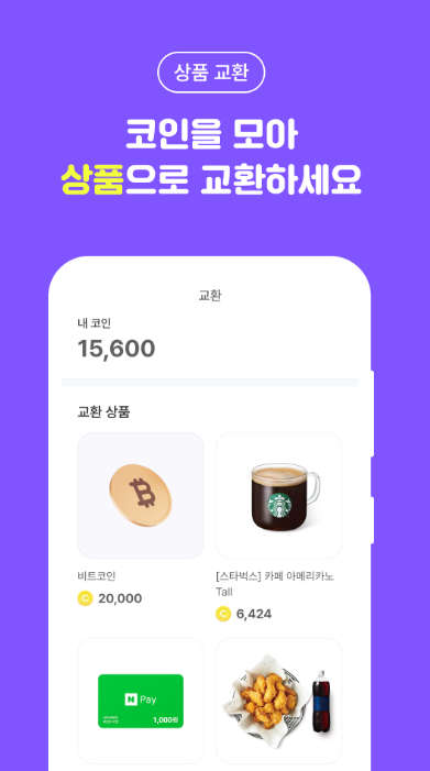 - 적립된 코인을 네이버페이, 기프트콘 등으로 교환 가능!