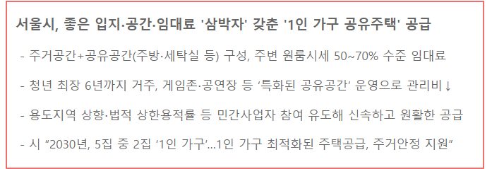 - 월 10~30만 원대의 청년 맞춤형 공공임대주택 제공