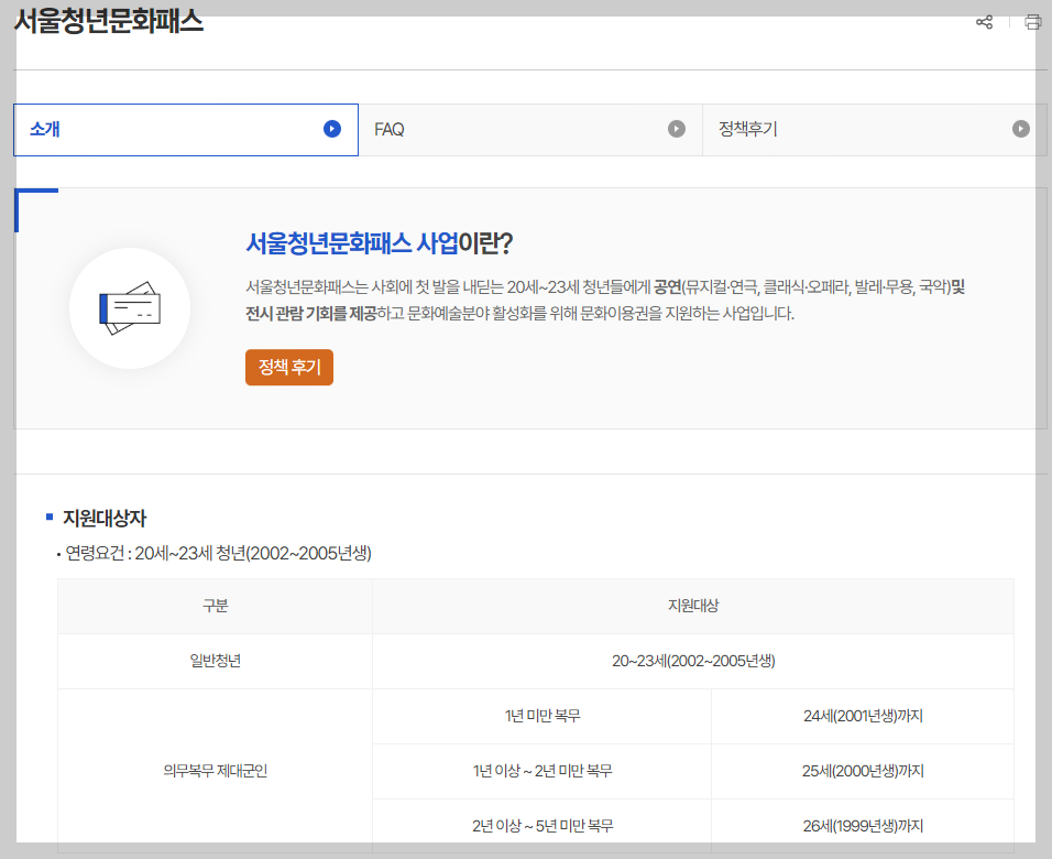 6. 서울시 청년 문화·여가 지원 – 청년 문화패스