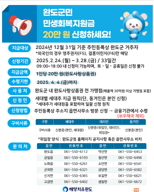 완도군 민생회복지원금 20만원 지급! 꼭 받아야 하는 이유