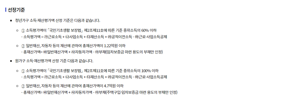 • 부모 포함 가구 전체 재산 4억 7천만 원 이하