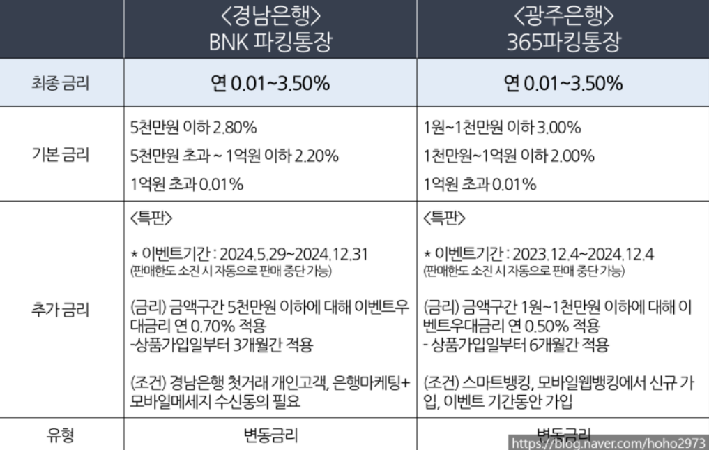 금융기관별 파킹통장 금리를 비교해 보았습니다.