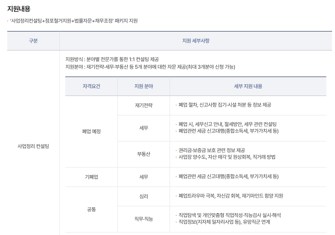 | 사업 정리 비용 지원 | 최대 200만 원 | 계좌 입금 |