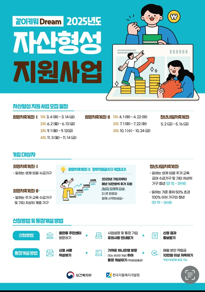2025년에도 정부의 자산형성 지원사업이 계속됩니다. 특히 희망저축계좌 1, 희망저축계좌 2는 저소득층 가구를 위한 대표적인 지원 정책으로, 자립을 돕기 위한 목적으로 운영됩니다. 본 글에서는 가입대상, 가입조건, 혜택, 모집 일정 등을 상세하게 정리해드리겠습니다.