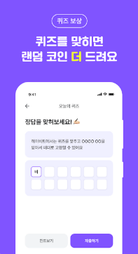 - 메인 화면에서 ‘오늘의 퀴즈’ 배너를 클릭하여 문제를 확인합니다.